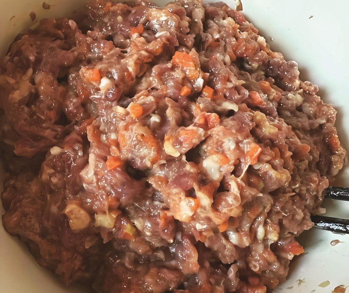 她调的馅是贞洁的银川风范——羊肉胡萝卜。羊肉选的是盐池滩羊,不膻不腻;胡萝卜擦成细丝,用盐杀出水分,挤干。“羊肉性温,胡萝卜性平,搭在一皆恰恰。银川东谈主爱吃羊肉,但羊肉馅饺子不好调,得用花椒水打馅,投注pp少量少量加,顺着一个地方搅,把水打进肉里,煮出来才嫩。”
