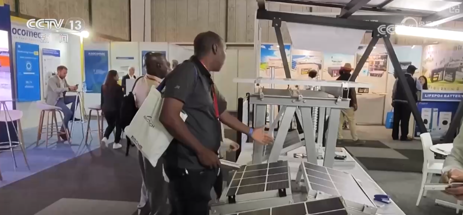 这个新能源居品不错说口舌常具有非洲特色,它的上头是两片光伏板,底下是两个不错调度角度的录像头,用光伏发电来维合手录像头的开动,还有把街灯、录像头和光伏聚合在一齐的。