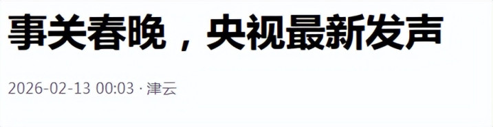 津云《事关春晚,央视最新发声》发布时间:2026.2.13
