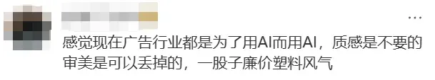 还有网友吐槽这一些列告白疑似皆由ai生成,脸上油油的,一股“伪东谈主感”扑面而来。