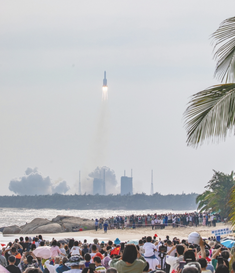 △东说念主们在文昌不雅看火箭辐照。图片来源:海南日报
