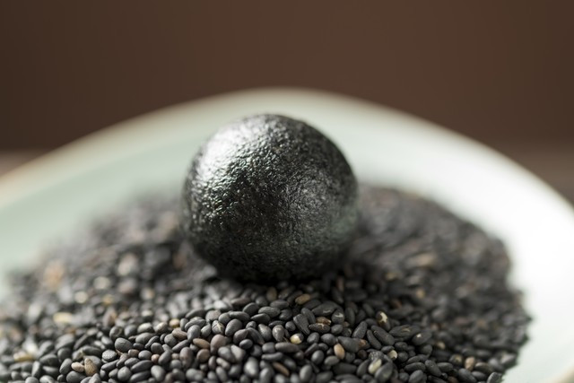 4.将炒好的黑芝麻茯苓粉制成10克傍边球状。