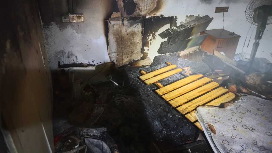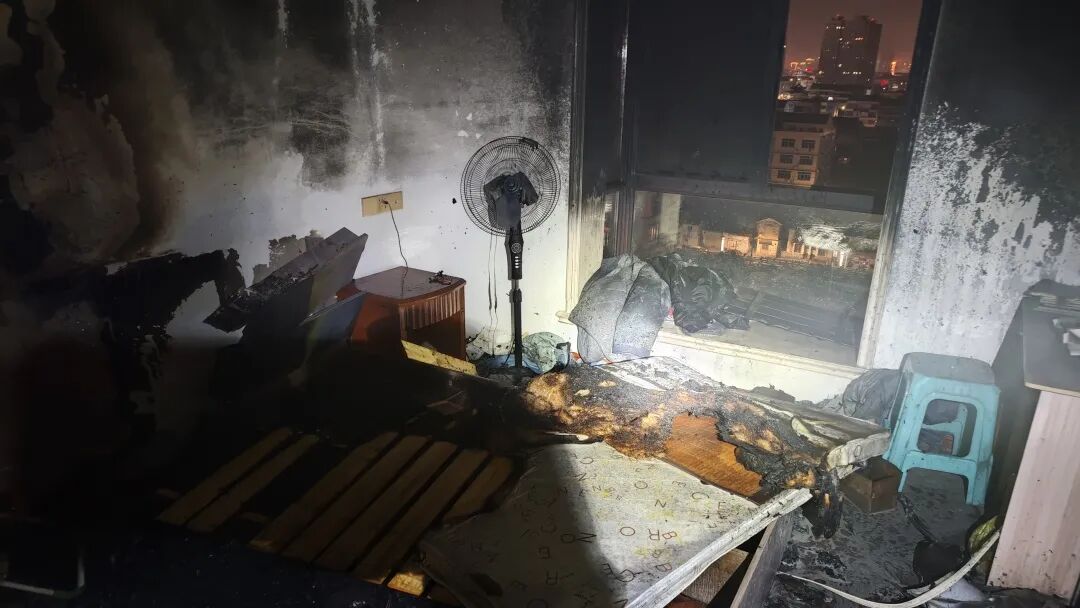 失火扑灭后的卧室。图源:浙江消防