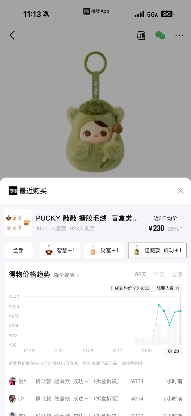 得物App数据显现,该系列发售之初,荫藏款“得胜”市集成交价由99元最高高潮至396元,溢价3倍多。惯例款中,智谋、钞票受到追捧,该产物市集成交价由99元高潮至162元、169元。