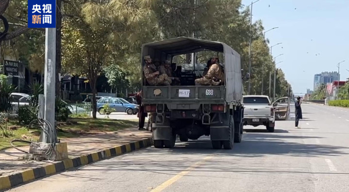 △10日,巴基斯坦伊斯兰堡街头,一群巴方安全东谈主员乘坐运载车辆。