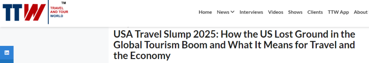 {jz:field.toptypename/}海外旅游行业媒体《旅行与旅游宇宙》网站也在报说念中提到,好意思国旅游业2025年呈现出了与群众旅游业茁壮发展截然违反的态势——入境搭客数目减少、旅游浪费额下滑,这一处所给好意思国旅游行业乃至合座经济带来雄壮冲击。
