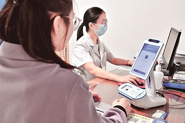 三明市中西医联结病院开展东说念主脸识别支付结算。徐倩倩摄/光明图片