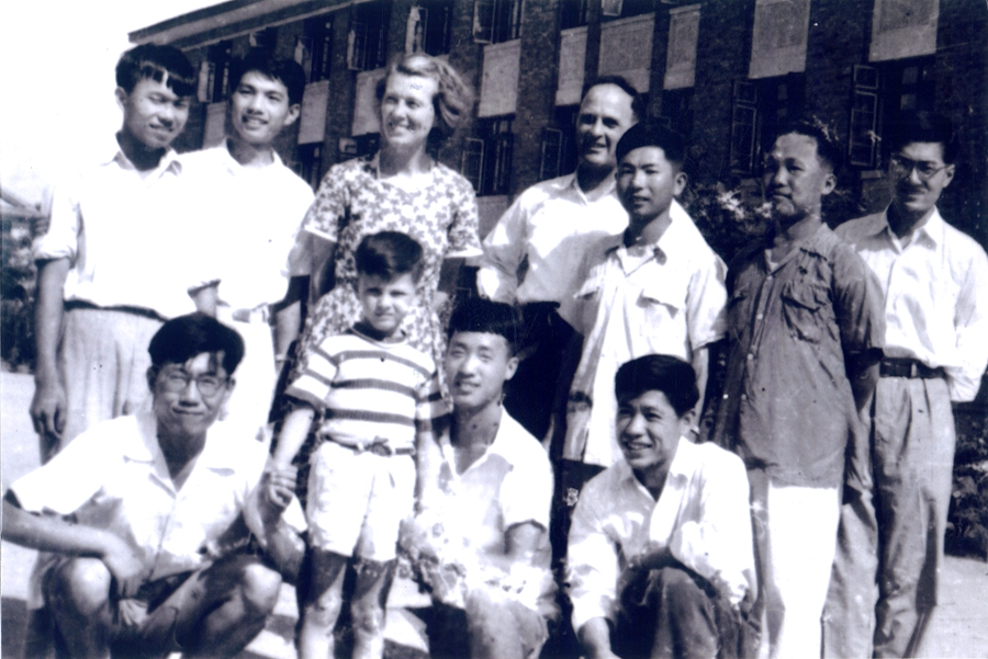 1957年,伊莎白·柯鲁克与学生们留影,柯马凯在母切身前。开首:受访者供图