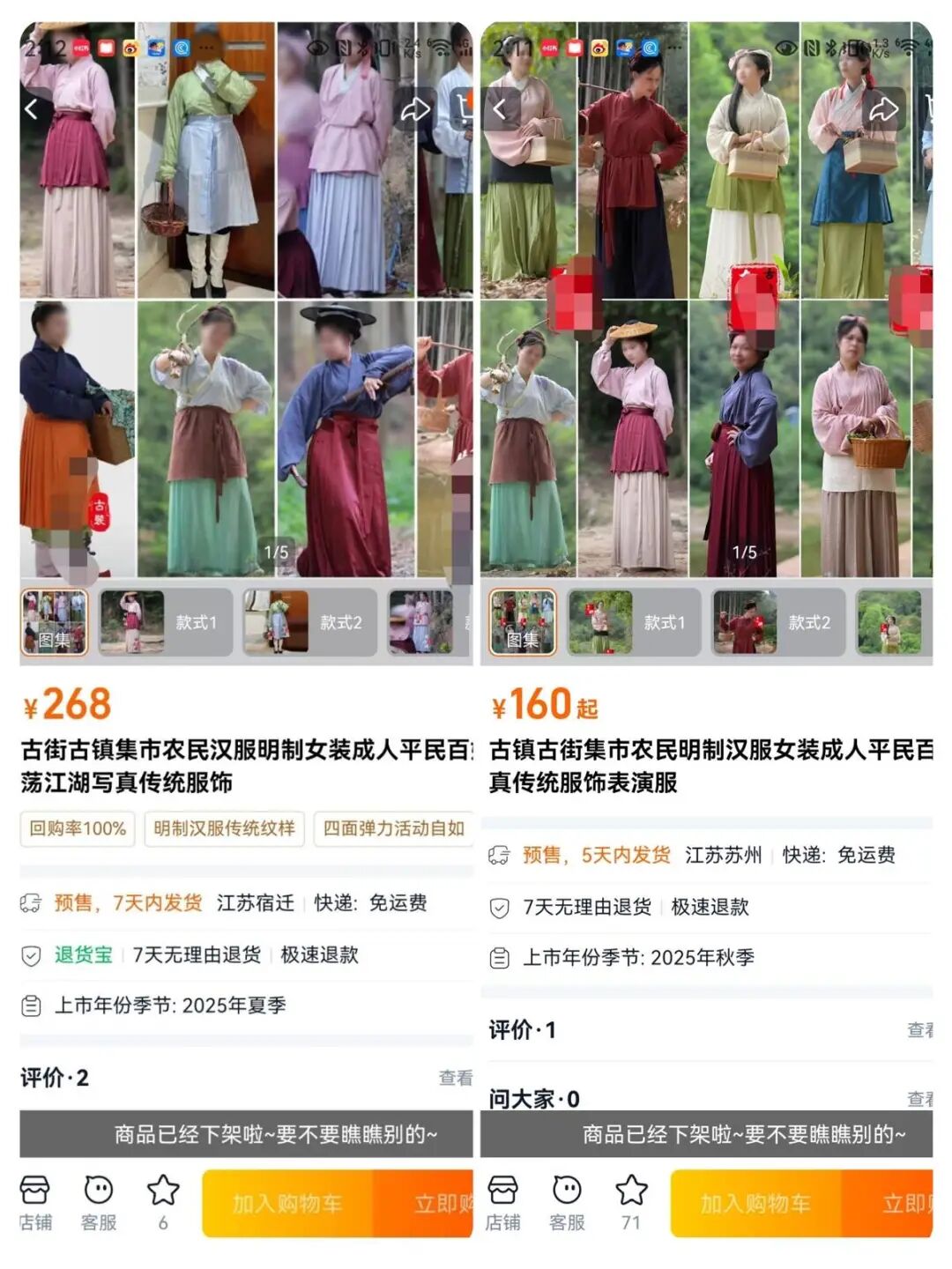 1月23日,有网友在酬酢平台发文称,她身穿汉服拍的个东说念主相片尴尬出当今了卖服装的电商页面中。1月24日,有涉事商家告诉极目新闻记者,这些相片来自某酬酢平台,但不领路具体是谁发布的,随后商家下架了有有关相片的商品采集。
