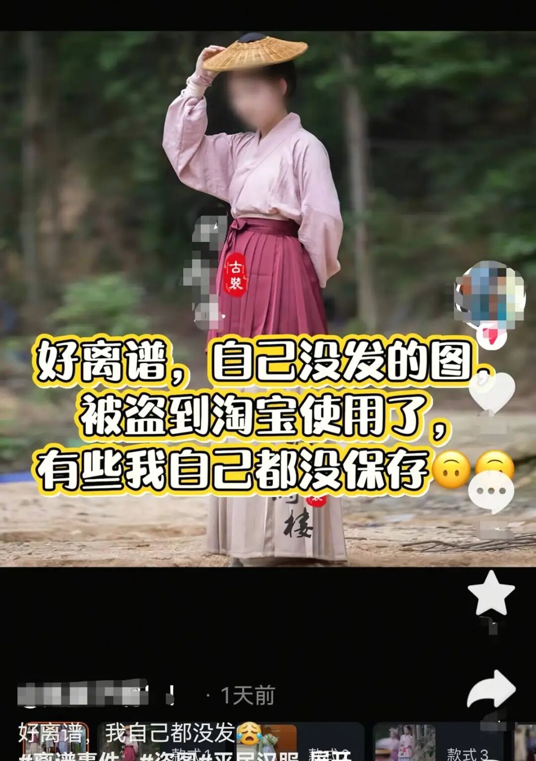 在酬酢平台发文曝光此事的莫女士告诉极目新闻记者,1月22日,她在电商平台准备买遗民汉服时,发现了一张我方的相片,“相片越刷越多,我越刷越不满,有些相片我我方齐莫得发布过,不外影相师可能历程咱们甘愿后也发在了他的酬酢账号上。”莫女士称,她前后发现四家商户将我方的相片用于买家秀宣传,买家秀的相片对她的脸部打了码。