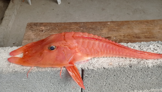 天然长得跟军舰似的,但这些鱼其实很不擅长拍浮,它们一般会用胸鳍下方那两根指状的游离鳍条在海底爬行!是的,果真是爬着走,况且这两根游离鳍条还能用来翻动土壤寻找食品。底层的水体频繁会因为极少动静就变得很污染,不外对红鲂鮄属物种来说是无所谓的,它们的下颌前线和侧面则长有多对触须,这些触须是首要的嗅觉器官,能在黯淡的深水中匡助探伤食品。