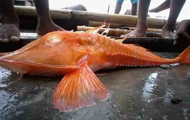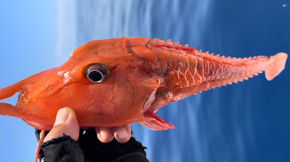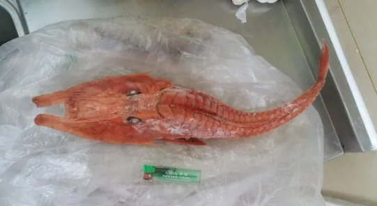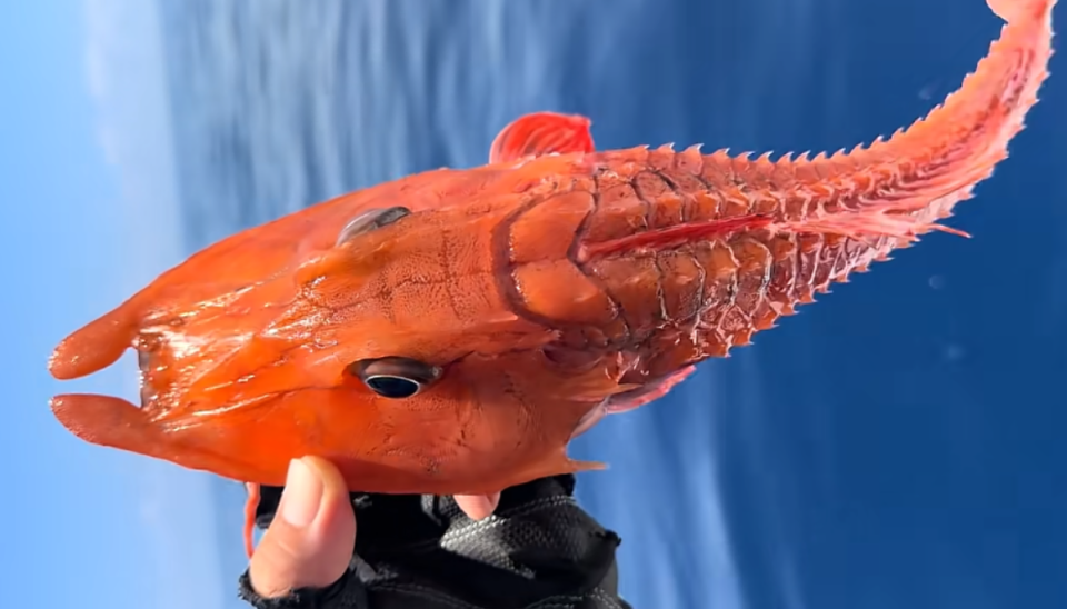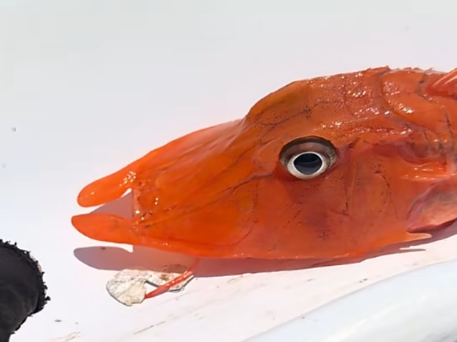 视频里展示的鱼外形果真有够乖癖的,鱼体是艳丽的橘红色,举座呈梭形且带有显然的骨质感,身上似乎套了重重叠叠的甲胄。