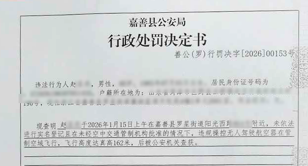 首张无东谈主机“黑飞”罚单