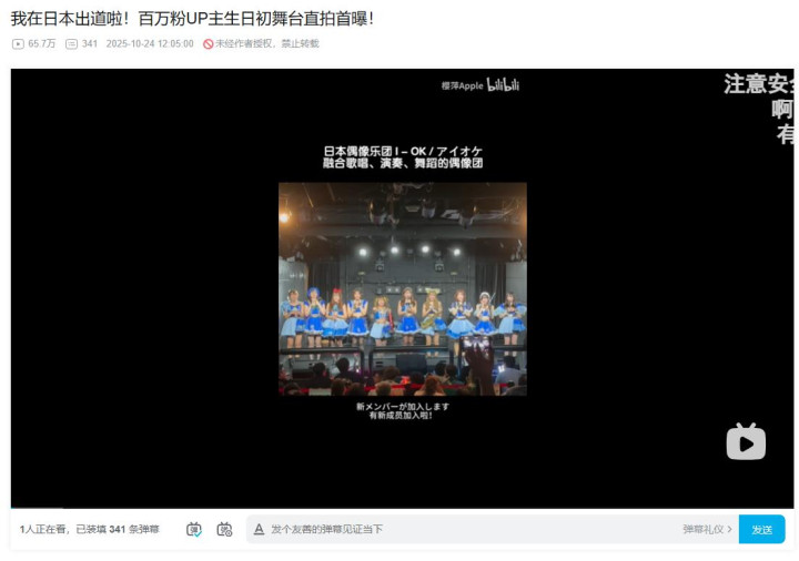 2025年10月,她在B站发了一条视频,标题等于《我在日本出谈啦!》,好多东谈主一运行合计是打趣,或者是某种“企划式视频”,成果她是的确加入了一个日本偶像团体——I-OK。