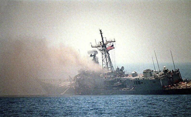 佩里级护卫舰"斯塔克号"(USS Stark)正在扩充例行巡查任务,毫无老成。两枚法国制"飞鱼"反舰导弹接踵掷中舰体,第一枚击中左舷后穿透多个舱室,打在右舷上未爆;第二枚击中稍高位置,剩余燃料爆炸废弃。37名好意思国水兵就地扬弃,整艘战舰炎火冲天。