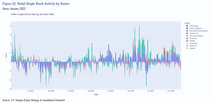 科技板块全体也难以避免。散户虽抓续买入TSLA、MSFT和NVDA等零卖骄子,但对"Mag 7"之外的科技股抓续净卖出真钱投注,导致科技板块全体仓位降至近六个月最低水平。