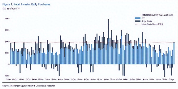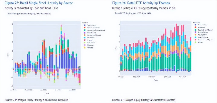 凭证摩根大通最新文牍,3月好意思股散户总购买量较1月历史峰值下滑近50%。上周三市集出现阶段性反弹,散户流入数据虽全体尚可,但结构上彰着偏向固定收益ETF而非职权钞票——这意味着散户的风险偏好正抓续削弱,而非随行情回暖而开采。
