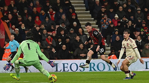 84分钟,埃瓦尼尔森单刀推射差之豪厘,伯恩茅斯错失绝杀契机。