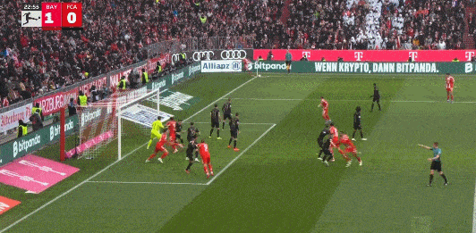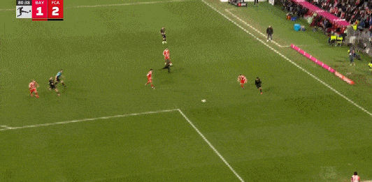 29分钟,帕夫洛维奇鼓励反击,分球左路,路易斯-迪亚斯杀入禁区但趟球力量太大,达门实时出击扑出单刀。45+3分钟,奥格斯堡迎来契机,费尔豪尔小角度抽射折射射中门框,拜仁逃过一劫。