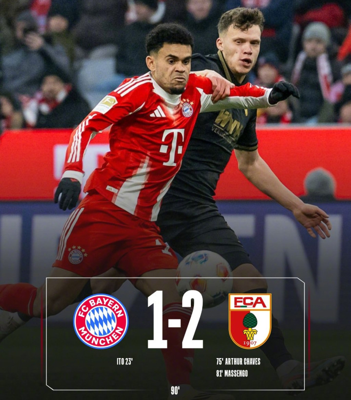 德甲:拜仁1-2奥格斯堡 首败!6分钟连丢2球 奥利塞中柱