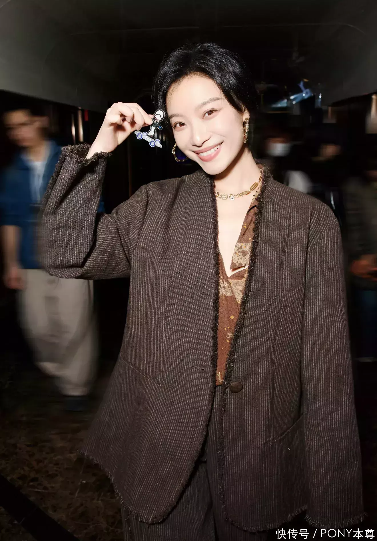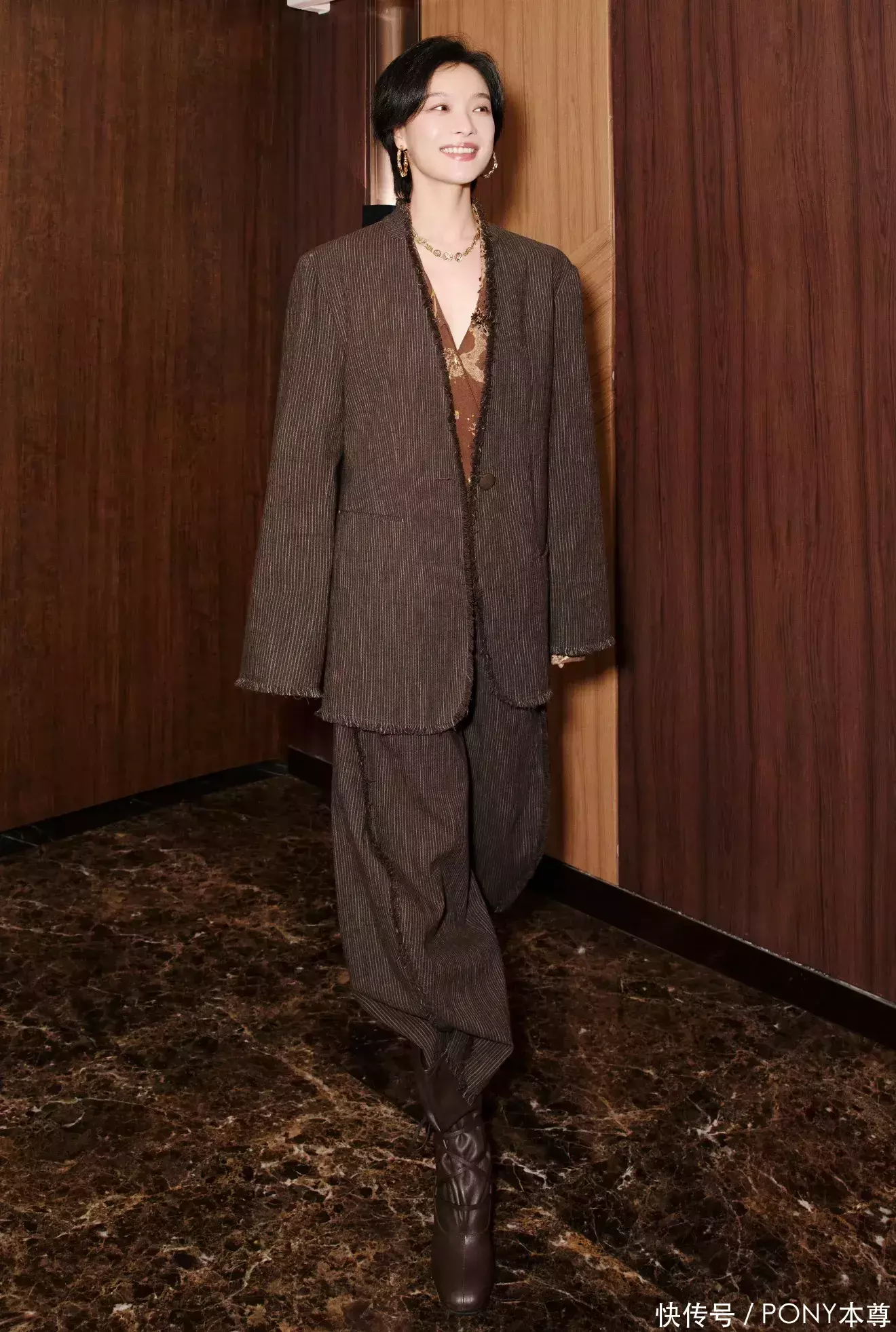 倪妮:棕色西装套装+棕色衬衫,帅气全齐!看成气质型女明星代表,倪妮换了短发造型后,一系数这个词帅气冲天!在宣传活动时,她身穿一件流浪风西装夹克,搭配裹胸盘算的棕色印花衬衫,搭配金色项链,和一双竹节金色耳饰,投注pp帅帅的很考究!