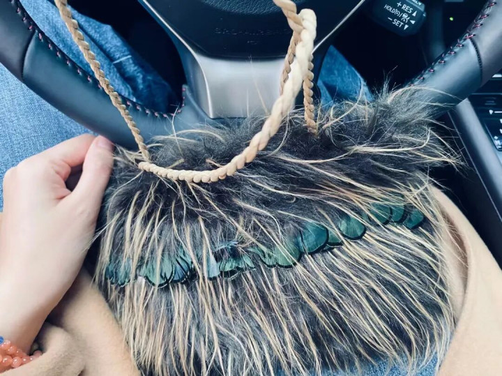 Aeolian:我的这款包包是别东谈主澳洲带回来的礼物。材质外传是鸵鸟毛。很小众也很可爱,冬日穿搭很相宜。▼