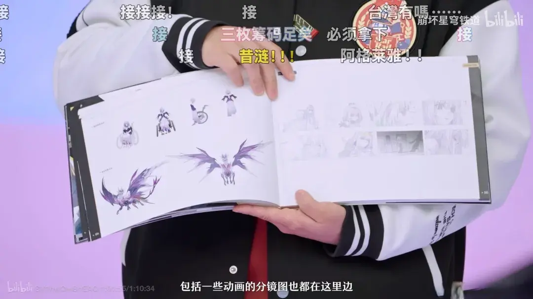 就拿此次的画册来说吧,它收录了2.4版块至3.8版块总共变装的盘算图、动画原画盘算稿、分镜图。这些内容,齐不是玩家在游戏这个「制品」中不错体验到的。换个角度来看,盘算图、分镜这些更早期的内容,也不错让玩家有契机去真切了解我方心爱的变装,去纯属这些变装从零到一的出身过程。