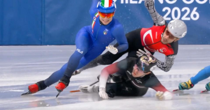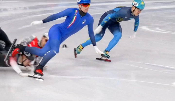 在第二小组争夺里出现荒漠场景,意大利名将佩特罗-西格尔在冲刺时不是面向荒谬线,而是背向荒谬线,倒着冰刃过线。