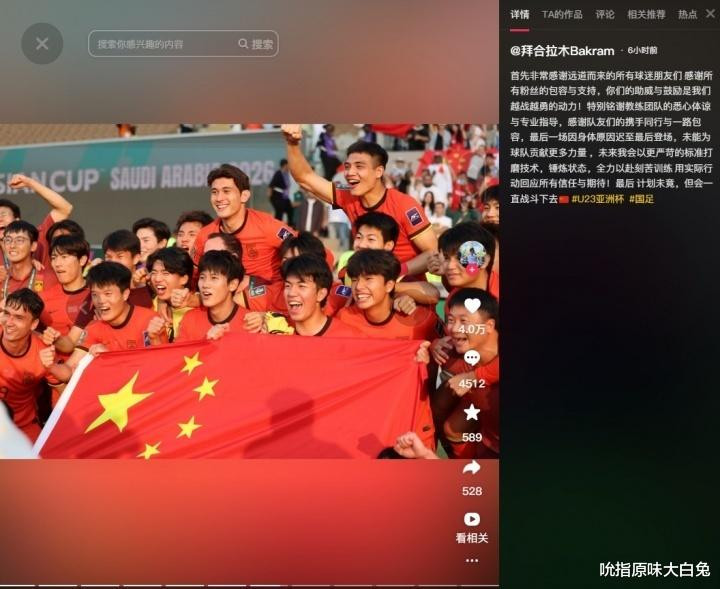 拜合拉木发声,决赛是因为体魄原因迟至临了登场。拜合拉木诚然饱受争议,但对阵日本队如故让东说念主昭彰了他的作用。之前齐说拜合拉木太糙了,望望U23国足期间好的那些球员,在日本队员强力冲击下,连球齐拿不住、传不出,干豫不胜。莫得拜合拉木的冲击和压迫,让日本队的后卫线踢得太毛糙了,不错鸿沟热切。